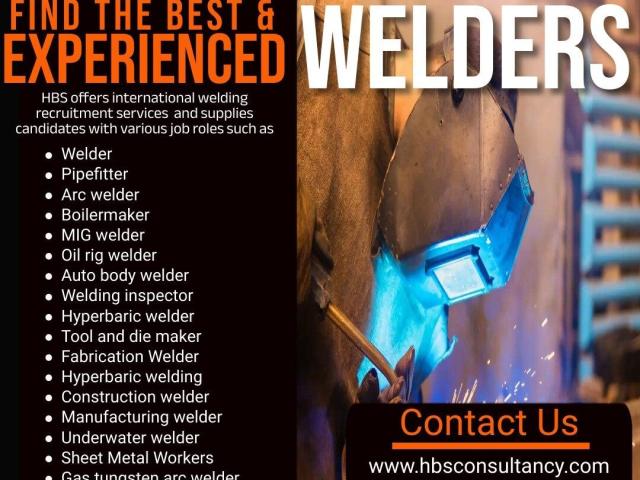 HBS Consultancy has expertise to provide best welders recruitment services worldwide. Thewelders manpower agency has wide database of welders such as 6GWelders, Arc welder, Boilermaker, MIG welder, Oil rig welder, Auto body welder, Pipefitter, Welding inspector, Hyperbaric welder, Tool and die maker, Fabrication Welder, Hyperbaric welding, Construction welder, Manufacturing welder, Underwater welder, Sheet Metal Workers, Gas tungsten arc welder, Structural iron and steel worker, Industrial maintenance welder for the manufacturing and steel plants, Solar panels, nuclear power plants, and wind and water turbines and other infrastructural projects all over the world. We are new in the market but our work culture and processing maintain professionalism with fruitful feedback from our current clients by supplying well experienced and English speaking candidates as per the demands. Nowadays we are offering our welding recruitment services to many European countries such as the UK, Romania, Poland, Lithuania, Bosnia and Herzegovina, Hungary, Serbia, Croatia, etc.